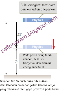 Untuk situasi gravitasi buku jatuh, Persamaan 8.10 dapat ditulis sebagai: