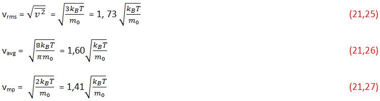 Gambar 21.11 menunjukkan kurva distribusi kecepatan untuk nitrogen N2. Kurva diperoleh dengan menggunakan Persamaan 21.24 untuk mengevaluasi fungsi distribusi pada berbagai kecepatan dan pada dua suhu. Perhatikan bahwa puncak di setiap kurva bergeser ke kanan dengan meningkatnya T, menunjukkan bahwa peningkatan kecepatan rata-rata dengan meningkatnya suhu, seperti yang diharapkan. Karena kecepatan terendah yang mungkin adalah nol dan batas klasik atas kecepatan tak terhingga, kurva yang asimetris. (Dalam Bab 39, kita menunjukkan bahwa batas atas yang sebenarnya adalah kecepatan cahaya.)