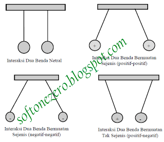 muatan-muatan listrik positif dan negatif selalu saling tarik-menarik, sedangkan yang sejenis akan tolak-menolak. Perhatikan gambar di bawah ini!