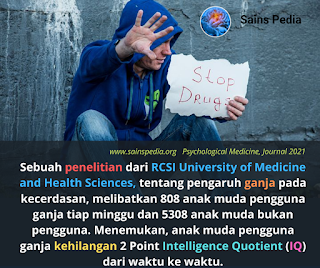 Sebuah penelitian menemukan bahwa remaja yang sering menggunakan ganja dapat mengalami penurunan Intelligence Quotient (IQ) dari waktu ke waktu. Temuan penelitian memberikan wawasan lebih lanjut tentang efek neurologis dan kognitif yang berbahaya dari penggunaan ganja yang sering pada orang muda.