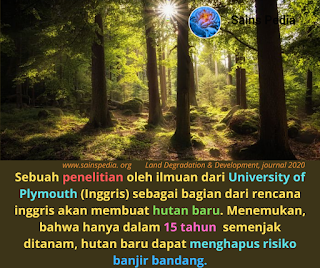Sebuah studi baru oleh University of Plymouth (Inggris) telah menunjukkan bahwa hanya dalam 15 tahun ditanam, pohon berdaun lebar asli dapat memiliki dampak yang nyata pada respon tanah selama kejadian cuaca ekstrim, banjir bandang.