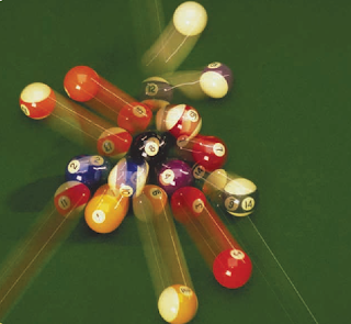 Perhatikan apa yang terjadi ketika bola di meja biliar menyerang bola yang lain, seperti dalam foto di sebelah kanan. Bola putih datang dari atas foto itu dan menyerang bola berwarna. Bola berwarna, awalnya diam, meninggalkan tempatnya dengan berbagai kecepatan. Karena gaya rata-rata yang bekerja pada bola tertentu selama tumbukan yang besar (menghasilkan akselerasi yang besar), bola bisa mencapai kecepatan besar yang sangat cepat selama interval waktu yang sangat singkat bahwa bola berada dalam kontak dengan bola yang lain.