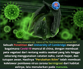 Study dari University of Cambridge memberikan bukti mekanisme di mana perubahan iklim dapat memainkan peran langsung dalam munculnya SARS-CoV-2, virus yang menyebabkan pandemi COVID-19. Sebuah studi baru yang diterbitkan hari ini di jurnal Science of the Total Environment